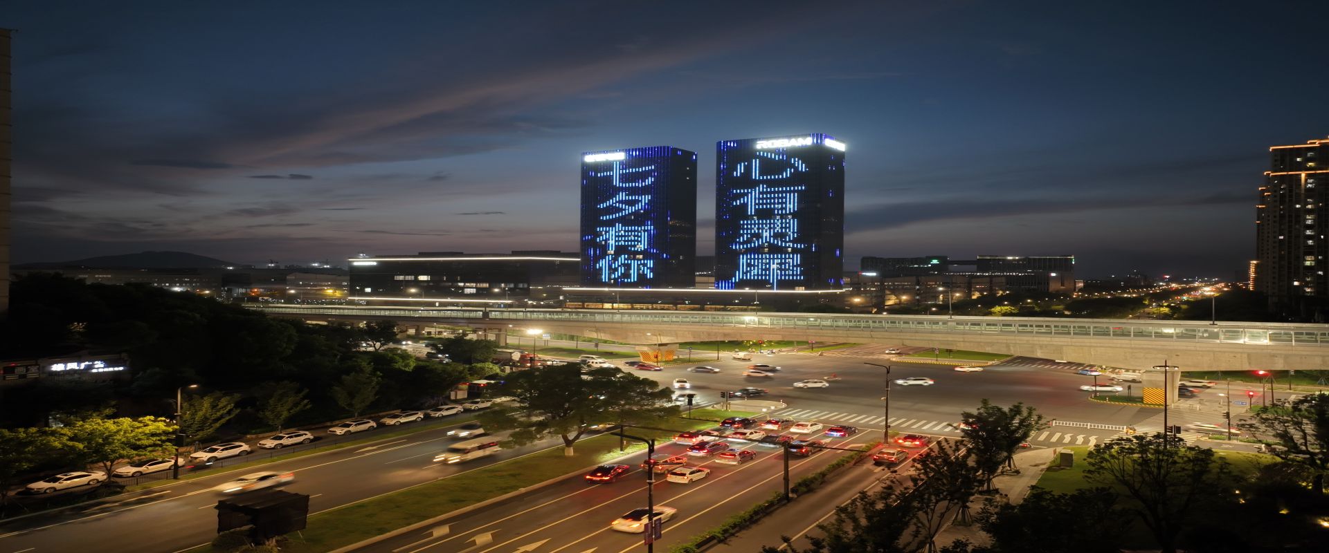 老板电器双子楼灯光亮化工程位于杭州市,由两座高约100米的双子楼和一栋裙楼组成。项目采用勇电IP68线条灯、地埋灯以及柔性线条灯等,旨在打造出具有科技与智慧感的灯光效果,为建筑注入了新的活力。